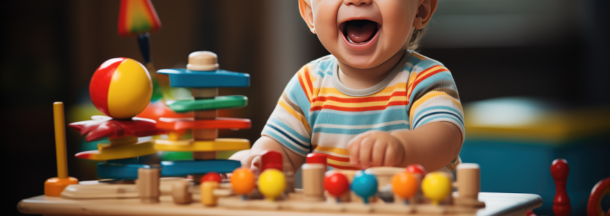 For example, I watched my own mother manage classrooms of two-year-olds by keeping them mesmerized with action songs and puppets in motion. And I can’t count the times I’ve distracted babies during diaper changes by holding a toy under my chin, shaking it with my neck, then letting the baby or toddler grab it—repeating this again and again to create a game. Motion and noise work so much better than trying to fight little hands grabbing messy bottoms!